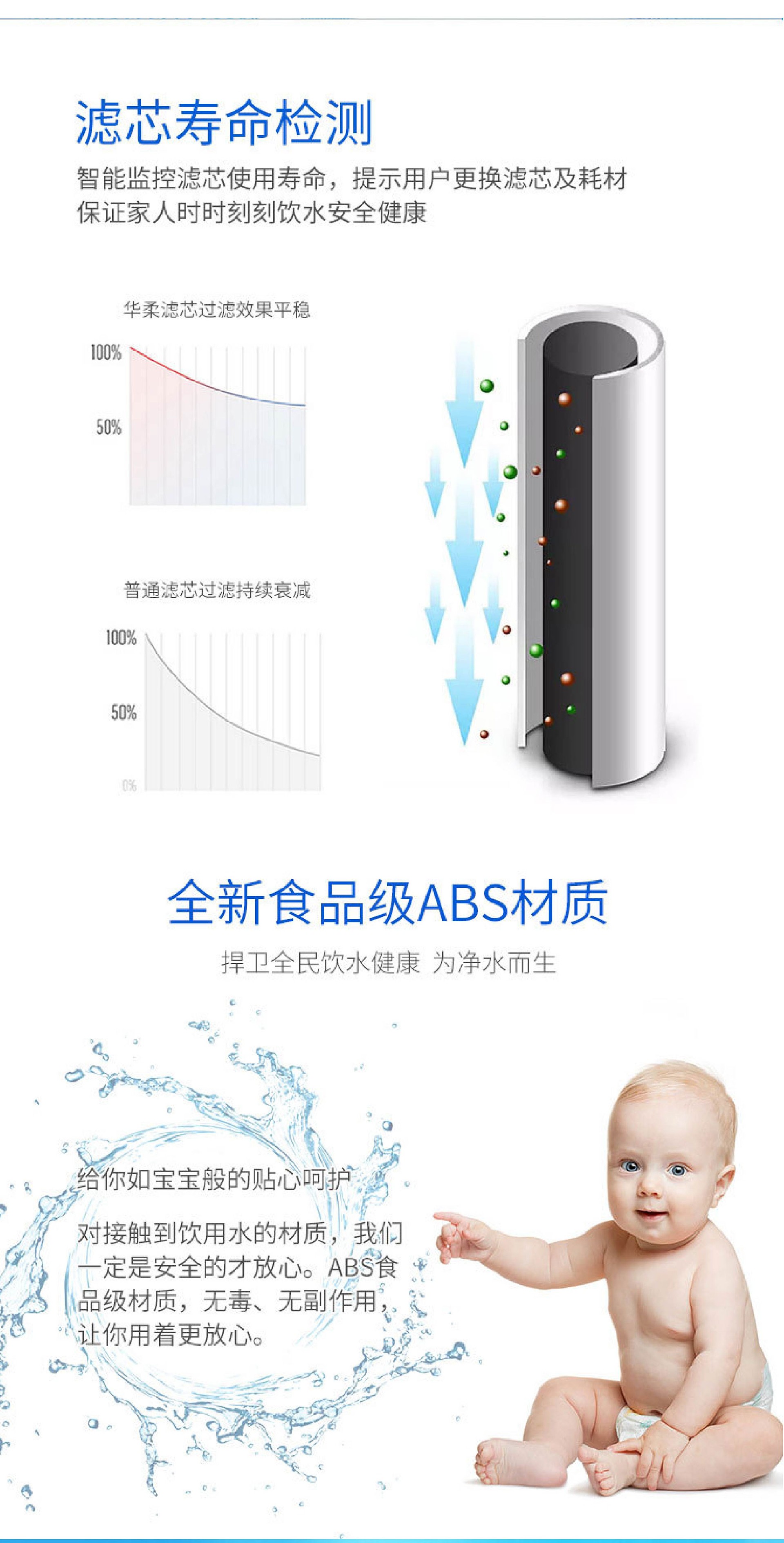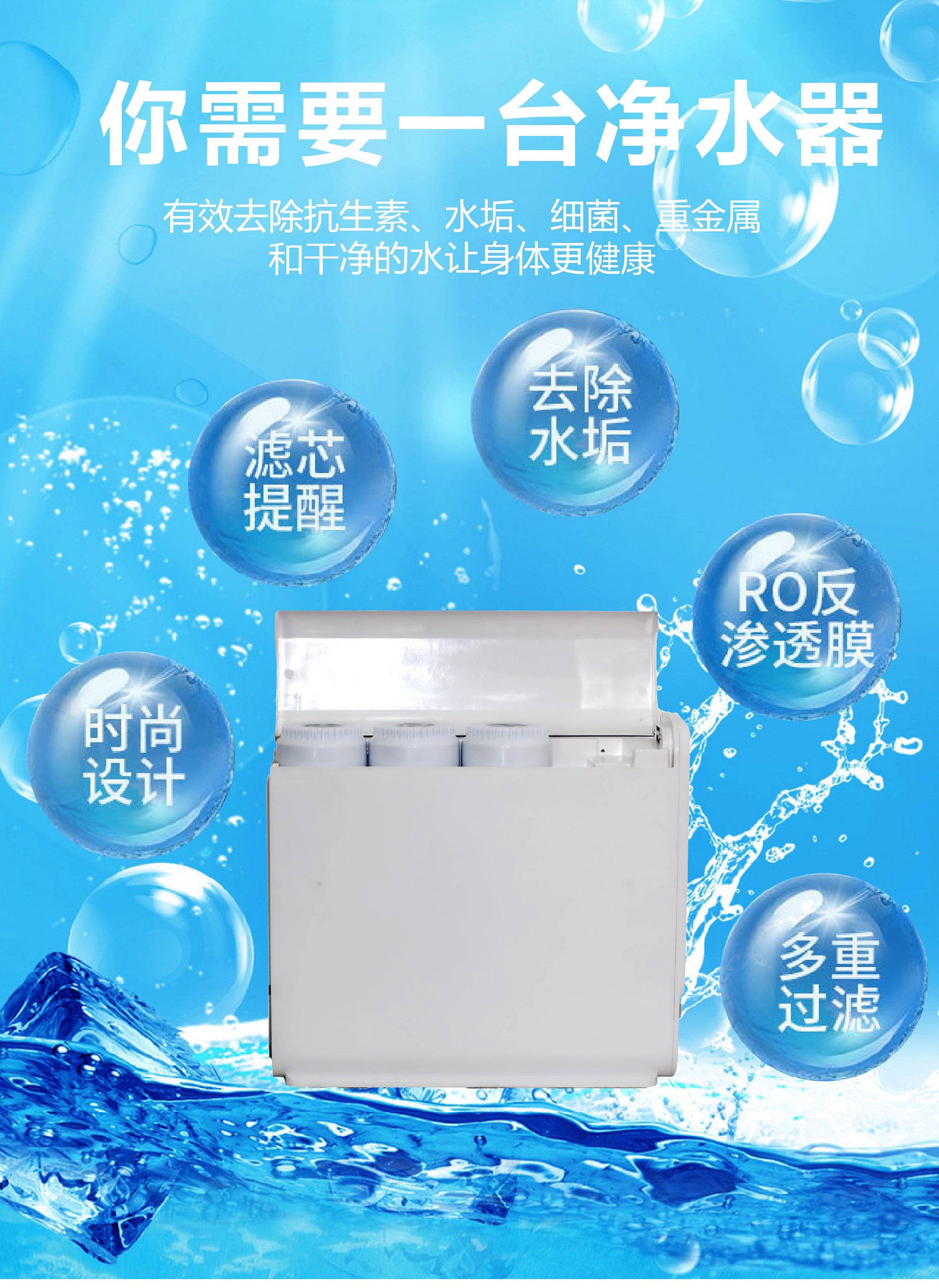 ★净水行业的双水技术★反渗透技术,长效滤材,健康饮水★占用空间小,使用方便。★业内高标准,台湾无菌压力桶。★微电脑智能化控制,智能滤芯提醒,自动冲洗。★食品级水电路管接件配置。★有效去除水中重金属离子、有机物、细菌病毒、农药残留等有害物质。