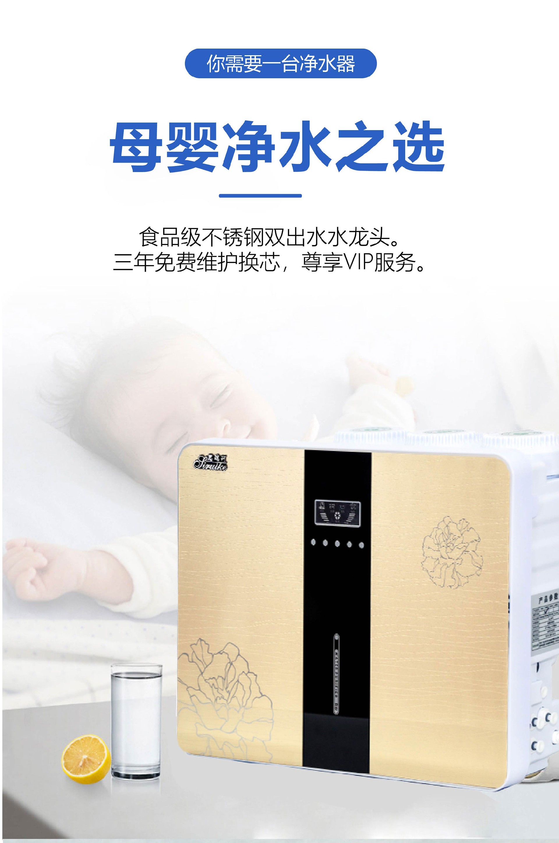 ★净水行业的双水技术★高标准,台湾无菌压力桶。★微电脑智能化控制,自动冲洗。★食品级水路管接件配置。★纯水、净水任意选择。适用范围:超市,个体经营户,家庭等。★新鲜纯净,可直饮。★享受三年全免费质保,定期免费换滤材