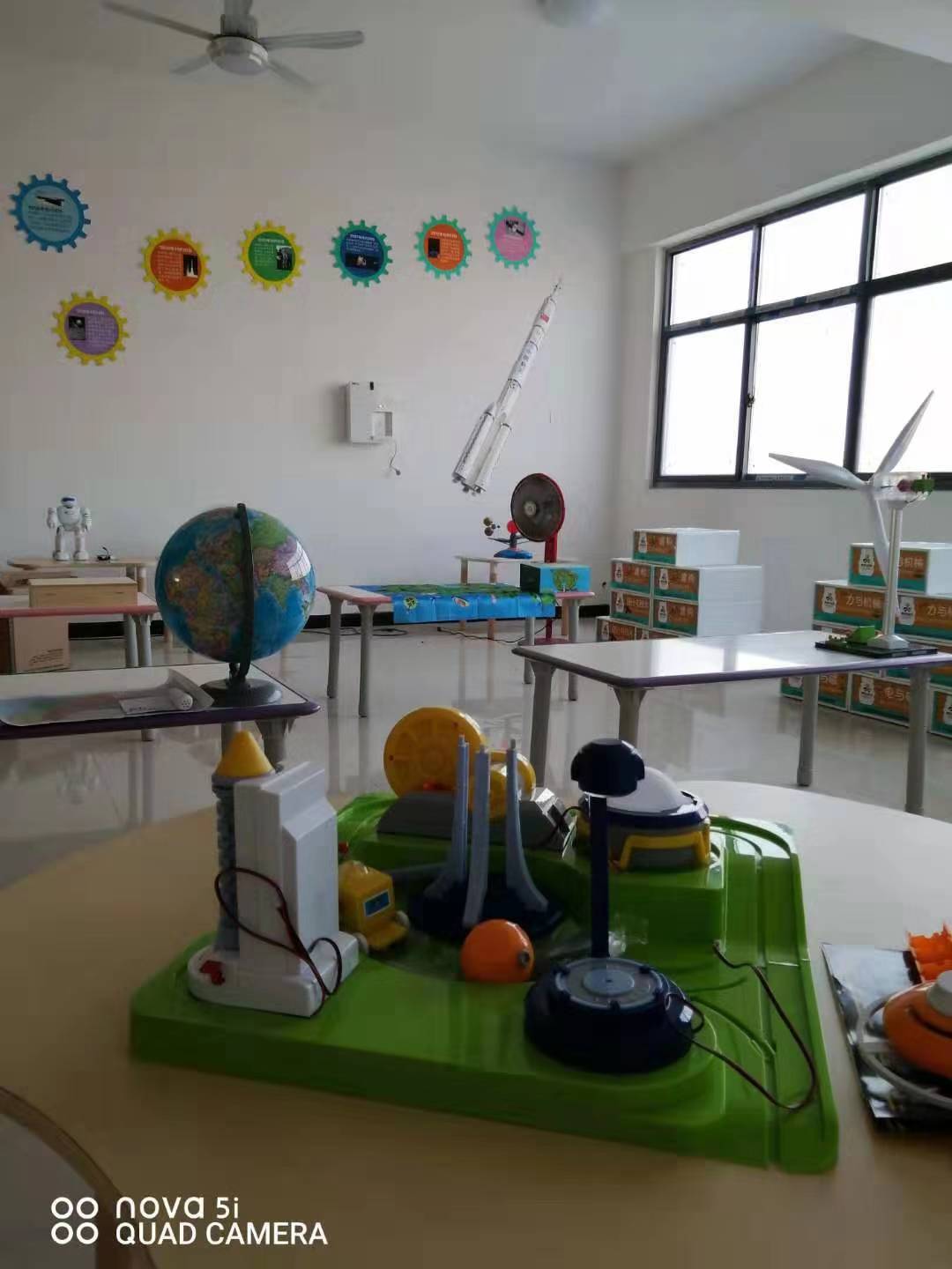 工业机器+管线机组合,热水通到每个教室。