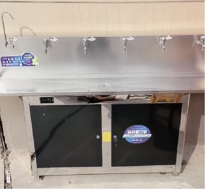 小学部安装六龙头校园饮水平台幼儿园安装黄白箱加管线机组合