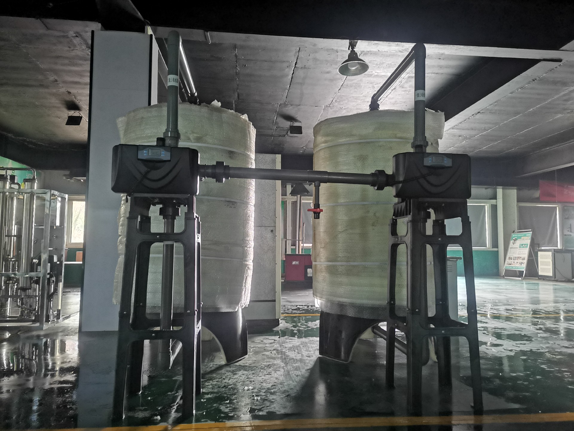 钠离子树脂软化罐控制方式为全自动型控制,全自动型控制是根据周期制水量来启动在再生程序,设备运行时由专用流量计统计总产水量。当总产量达到设定的周期制水量时,控制器启动再生程序进行自动再生,设备的再生与运行时间无关。全自动软水器选用优质树脂交换罐体及盐箱。