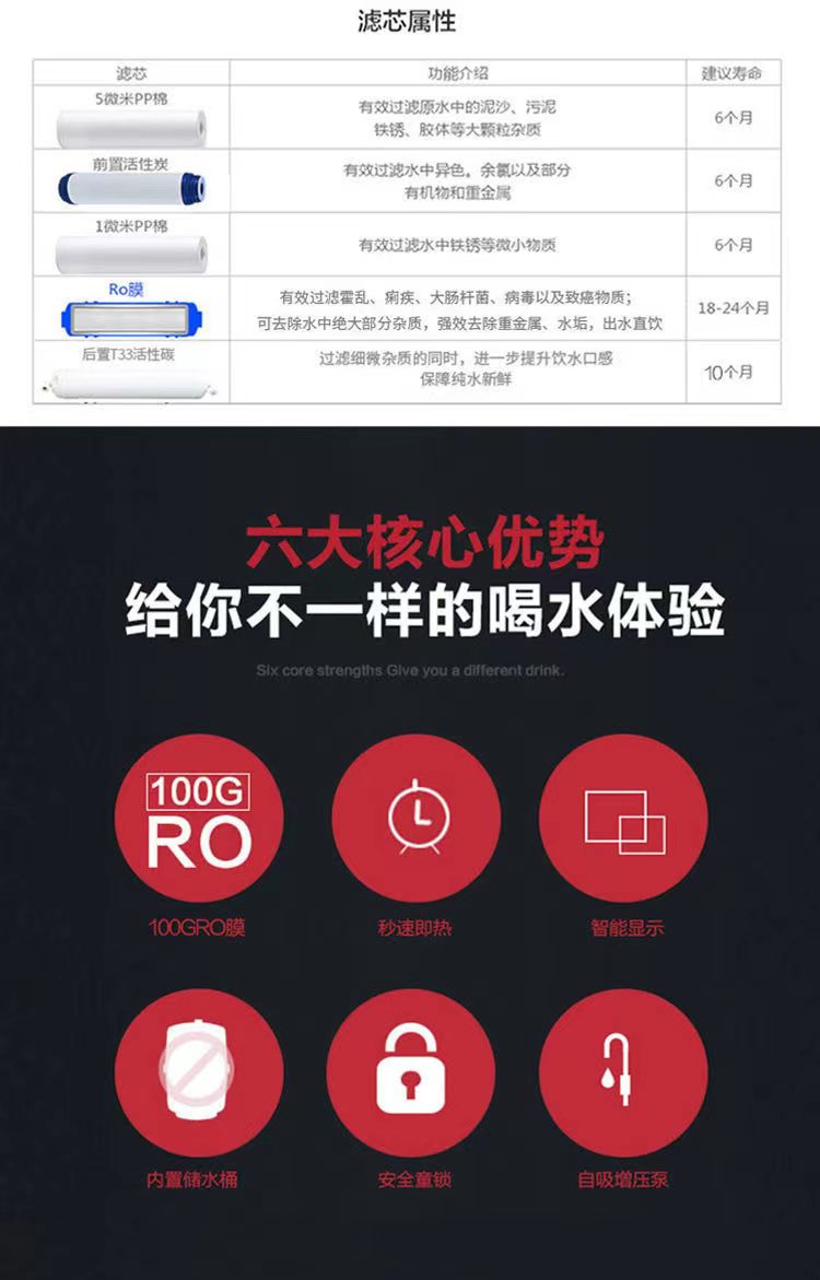 ★开水、温水、凉水,使用更方便。★反渗透技术,长效滤材,健康饮水。★占用空间小,使用方便。★高标准,内置无菌水箱。★微电脑智能化控制,智能滤芯提醒,自动冲洗。★食品级水电路管接件配置。★有效去除水中重金属离子、有机物、细菌病毒、农药残留等有害物质。适用范围:超市,个体经营户,家庭等