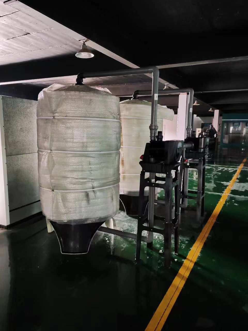 当树脂吸附一定量的钙、镁离子之后,就需进行再生。时间为每运行10小时左右,须再生一次。再生过程就是用盐箱中的食盐冲洗树脂层,把树脂上的硬度离子在置换出来,随再生废液排出罐外,树脂就又恢复了软化交换能力(软水器不可用加碘盐、加钙盐作再生剂、定期向盐箱加盐确保盐水饱和浓度),再生时间在晚上比较好,设备停止后吸完盐,放置一晚上,第二天按反洗、正洗步骤清洗干净后,再产水效果好。